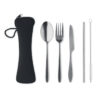 Bestick set av rostfritt stål inklusive gaffel, kniv, sked, sugrör och borste i neoprenpåse.