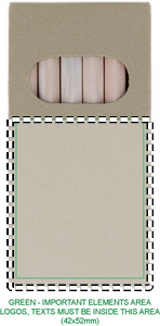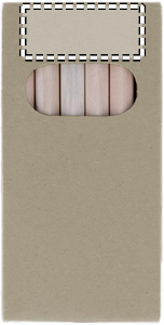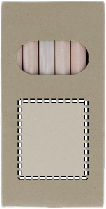 Set med 6 st färgade träpennor i en kartong av obehandlad papp.