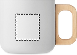 Mugg med dubbelvägg i återvunnet rostfritt stål (90% återvunnet rostfritt stål och 10% rostfritt stål) mugg med trähandtag. Volym: 350 ml.