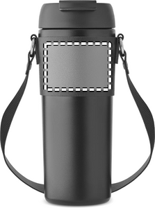 Flaska med dubbelvägg, pulverlackerad i rostfritt stål med PP-lock (2-i-1 sugrörlock) och med PU-bärband. Läcker inte. Volym: 700 ml.