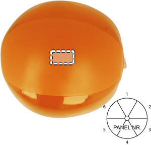 Uppblåsbar badboll med varannan panel semitransparenta och varannan solid. Storlek uppblåst: Ø24cm