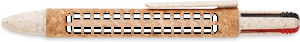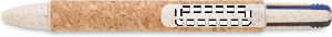 Penna med 4-färgers bläck (blå, röd, grön och svart), korkhölje och detaljer av vetestrå (50%) och ABS-plast (50%).