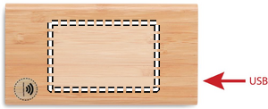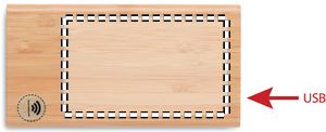 Trådlös laddare och Powerbank med en kapacitet på 6000 mAh i bambu. USB och USB-C uttag. Power bank output DC9V/1.66A (15W). Trådlös output: DC9V/1.66A (5W). Då Bambu är ett naturmaterial kan färgen variera lite.