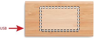 Powerbank med 6000 mAh kapacitet i bambuhölje. Utgångsström DC5V/2A. LED indikator för laddning och USB-kabel med typ C-kontakt. In/utgång: Typ-C kontakt.