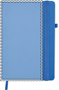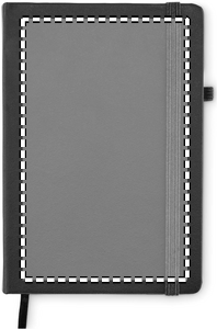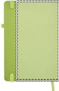 A5-anteckningsbok med omslag av 70% återvunnet läder och 30% latex-PU. Bunden pärm, 192 linjerade sidor i återvunnet papper (96 ark). Matchande elastisk bomullsstängning och pennhållare.
