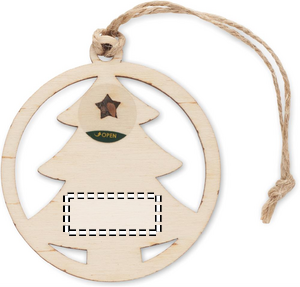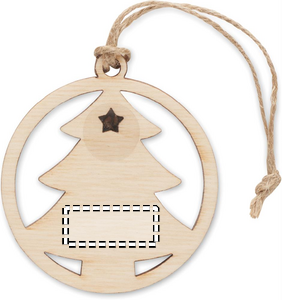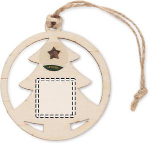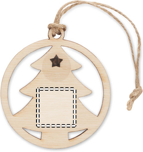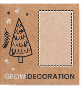 Julpynt i form av ett träd med jutesnöre och granfrön. Presenteras i kraftkuvert.