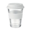 Take away mugg i glas med silicon lock och midja. Rymmer 35cl. Enkel glas