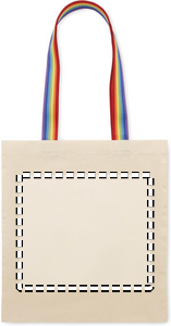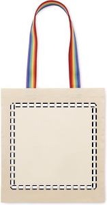180 gr/m². Kasse i bomull med regnbågsfärgade handtag. Viktgräns för bärvikt 2,5 kg. Denna produkt är certifierad enligt OEKO-TEX® STANDARD 100.