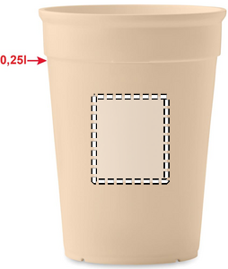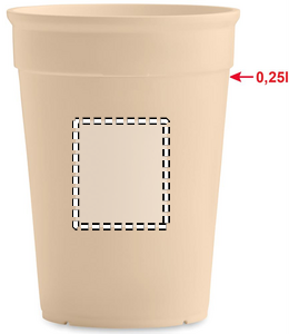 Återanvändbar enkelväggig kaffekopp i PP. Kapacitet: 250 ml. Silikongreppet ger dig ett bra grepp och skyddar dina händer från att bränna sig.