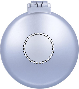 Vikbar hårborste med spegel i plast. Silverfärgad finish.