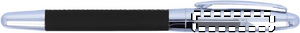 Set av kulspets. och rollerballpenna i metall, förpackad i PU läderfodral med dragkedja och kontrast sömmar. Blått bläck i kulspetspennan och svart bläck i rollerballpennan.