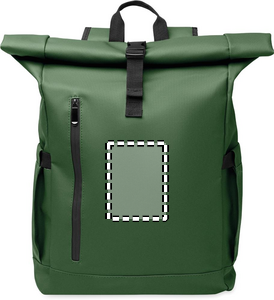 15'' rulltopp dataryggsäck i PU-belagd 600D RPET polyester och RPET polyesterfoder. Meshed vadderad rygg med ficka med dragkedja och vagnsrem. Vadderad axelrem med mesh på insidan.