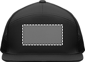 7 panelers keps i bomullstwill med baksida i polyestermesh och plastspänne. Platt skärm. 235gsm