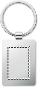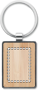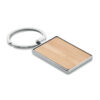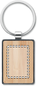 Rektangulär formad nyckelring av zinklegering med bambufront. Bambu är en naturligt material och det kan finnas små variationer i färg och storlek, vilket kan påverka märkningen.