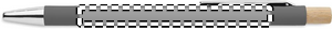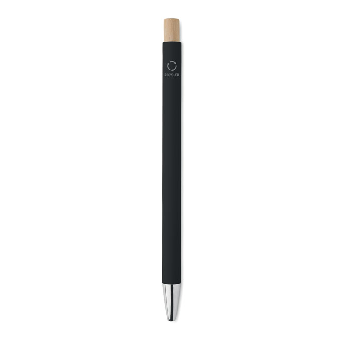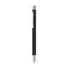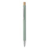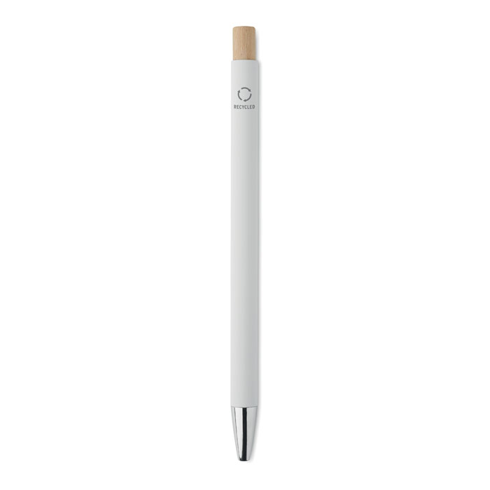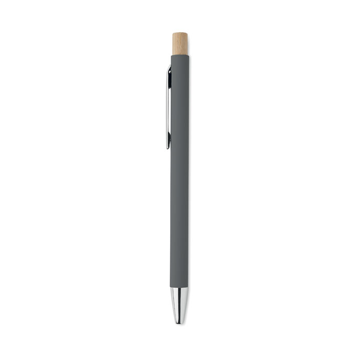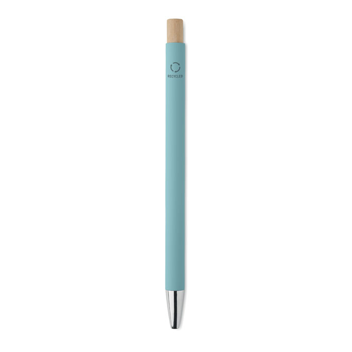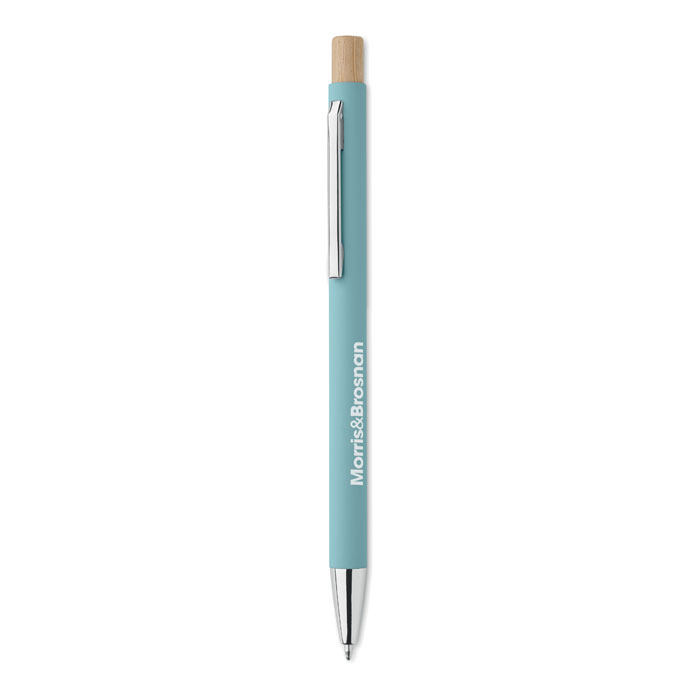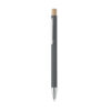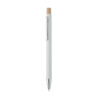 Penna i återvunnet aluminium med tryckknapp i bambu. Silverfärgad spets och klips. Blått bläck.