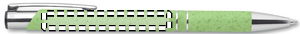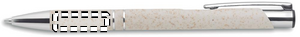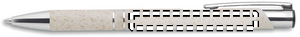 Kulspetspenna tillverkad av 50% vetehalm och 50% ABS plast med silverfärgade detaljer. Inblandningen av vetehalm i plastmaterialet reducerar plaståtgången till hälften. Blått bläck.