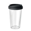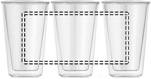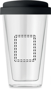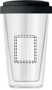 350ml Take away mugg i Borosilikat glas med dubbelvägg och silicon lock. Borosilikatglas är en typ av glas som inte kommer att spricka under extrema temperaturförändringar som vanligt glas. Tack vare detta har borosilikatglas förmågan att gå direkt från en frys till ugn och har därför gjort det till valet för avancerade restauranger, laboratorier m.m. För dig betyder det att du kan hälla varmt vatten, te eller kaffe utan att oroa dig. Tål maskindisk. Trycket på produkten är inte diskmaskinssäkert.