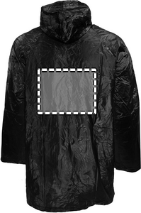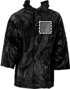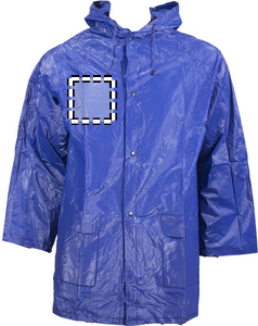 Regnkappa med kapuschong i PVC. Tryckknapps knäppning.