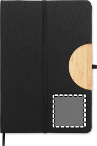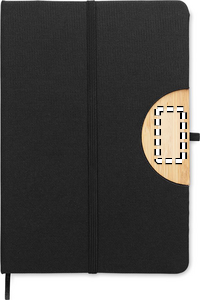 A5 anteckningsbok i 600D RPET-omslag med bambu-detaljer och en funktion för smartphone-stativ. Inbunden med hölje. 160st linjerade sidor (80 ark). 70 gsm återvunnet papper. Matchande elastiskt band, sidmarkeringsband och pennhållare. Ta med dig den här kontorsprodukten till nästa möte. Har du ett möte på distans? Fäll upp telefonhållaren och sätt in din enhet så att du inte behöver hålla den själv.
