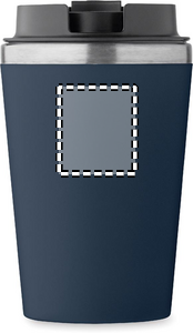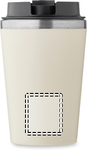 Dubbelväggig mugg med yttervägg i PP och innervägg i återvunnet rostfritt stål (90% återvunnet rostfritt stål och 10% rostfritt stål) med keramiskt coating. Läckagefri. Volym: 350 ml.