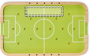 Fotbollsspel i trä. Innehåller spelare, boll, skytt och målstickor.