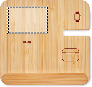 3 i 1 hopvikbar laddningsstation i bambu och telefonställ. Innehåller en 15W trådlös laddare med dubbla spolar, laddare för smartklocka (endast Apple®) och TWS-laddare.