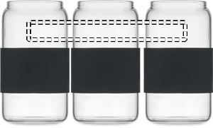 Borosilikatglas i hög design, silikonlock och grepp. Levereras med sugrör i borosilikatglas. Volym: 550 ml.