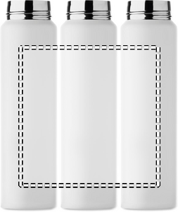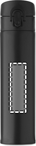 Dubbelväggig flaska i återvunnet rostfritt stål (90% återvunnet rostfritt stål och 10% rostfritt stål) med säkerhetslås på locket och möjlighet att öppna med tryckknapp. Läckagefri. Volym: 300 ml.