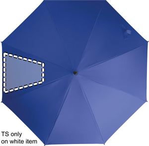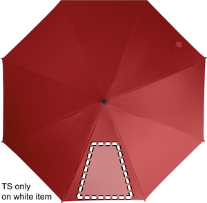 23'' paraply med automatisk öppning, svartpläterad metallram, ribbor av glasfiber och paneler i 190T pongee-tyg. Spetsar och topp i plast. Böjt handtag i gummerad PP-plast. Manuell stängning.