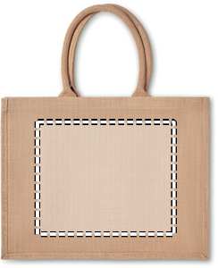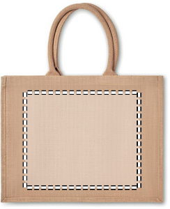 Shoppingkasse i laminerad jute. Väskan har korta handtag. Denna produkt är certifierad enligt OEKO-TEX® STANDARD 100.