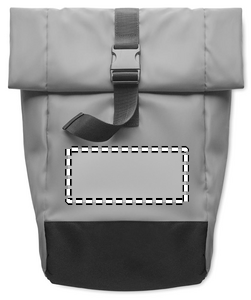 Ryggsäck i högreflekterande 190T polyester. Extra innersida med kardborreknäppning. Vadderad rygg, remmar och botten. Ficka med dragkedja på framsidan. Bottendel i 600D återvunnen polyester.