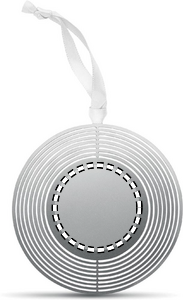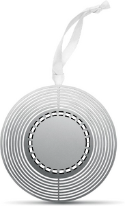 Rund dekorativ julprydnad i rostfritt stål med band i presentkuvert. Levereras platt för att enkelt skickas i brev och fälls sedan upp till en boll.