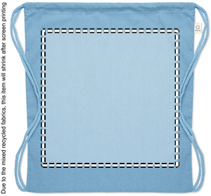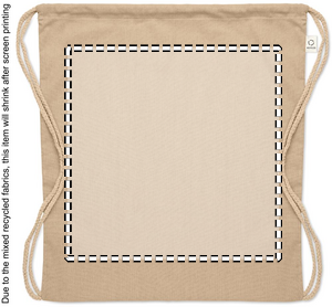 Gymnastikpåse i bomull av återvunna textilier (70 %) och RPET (30 %). 140 gr/m².