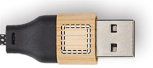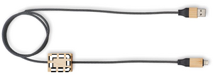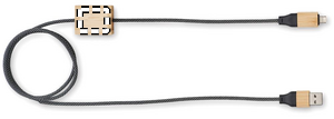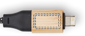 60W laddkabel i RPET med detaljer i bambu. Ingång: 2-i-1 Typ-C och Typ-A. Utgång: Typ-C och 2 i 1 stift.
