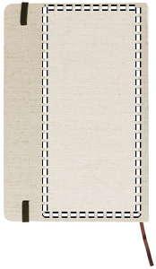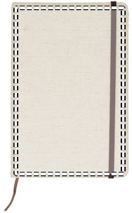 Anteckningsblock A5 med 96 linjerade sidor med hårt omslag i canvas och elastiskt förslutningsband och bokmärkesband.