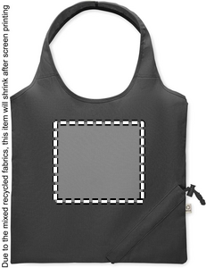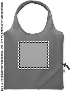 Hopvikbar kasse av återvunnen bomull, melerade färger (70% återvunnen bomull och 30% RPET). 140 gr/m². Produkten kan krympa något efter märkning.