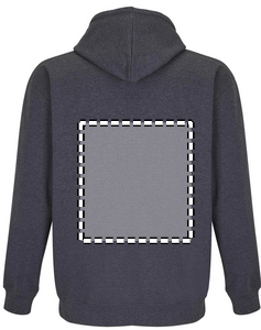 SOL'S CARTER, Hoodie med hel dragkedja 80% bomull - 20% Grs certifierad återvunnen polyester Ärmar med instick, skuren och sydd, 1X1 ribbade ärmslut och nederkant, känguruficka, fodrad huva med ton i ton dragsko och metallöglor, knäppning fram med dold dragkedja, ton i ton injicerad plastdragkedja med ton i ton metalldragkedja, halvmåne i trikå och nackband inuti kragen (1) Grey Melange : 73 % bomull / 20 % återvunnen polyester / 7 % viskos,(2) Charcoal Melange : 60 % bomull / 40 % återvunnen polyester. för matchande storlekar, se storlekstabellen i avsnittet om produktdokumentation.