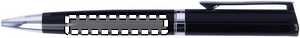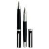 Pennset i mässing och rostfritt stål i presentförpackning. Kulspetspenna med vridfunktion, blått bläck och rollerball penna, svart bläck.