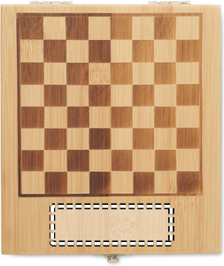 Schackbräden med vinset i bambulåda. Inklusive korkskruv, vinpip, flaskpropp och droppring för vinflaska.