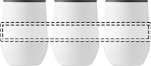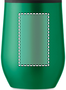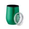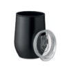 Mugg med dubbla väggar. Rostfritt stål med insida PP och genomskinligt PS-lock. Kapacitet: 350 ml.