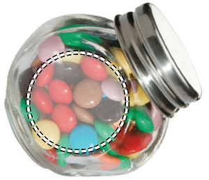 Chokladlinser i söt glasbehållare. Innehåller 40 gram choklad.
