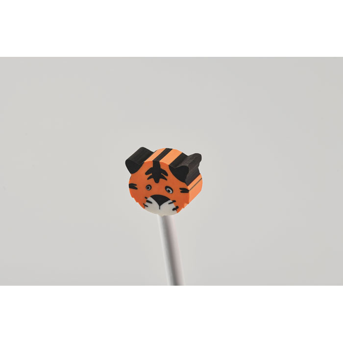 Blyertspenna med suddgummi i djurform.