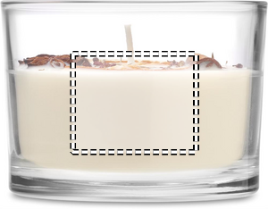 Doftat växtbaserat vaxljus med torkade blommor och frukter i glasburkshållare. Doft kanel <(>&<)> Citrus 300 gr. Brinntid: 50 timmar.
