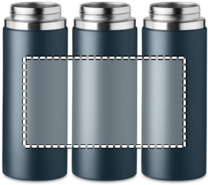 Termoflaska i rostfritt stål med dubbelvägg och krokhängare på locket. Kapacitet: 500 ml för varma eller kalla drycker.
