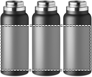 Termoflaska i rostfritt stål med dubbelvägg och krokhängare på locket. Kapacitet: 970 ml för varma eller kalla drycker.