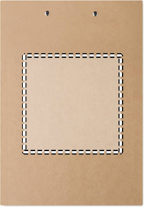 A4-hållare av kartong med pappersomslag och silverfärgad järnklämma. Lättviktsdesign på 125 g, perfekt för vardagligt bruk på kontoret eller i skolan.