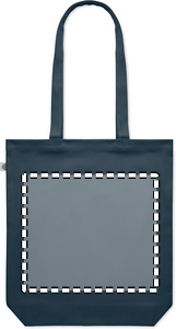 Kasse i canvas med långa handtag. 270 gr/m². Tillverkad av ekologisk bomull. Denna produkt är certifierad enligt OEKO-TEX® STANDARD 100.