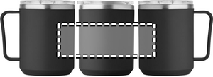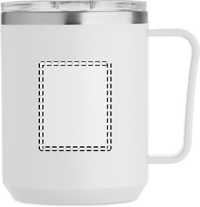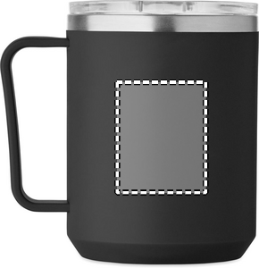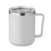 Dubbelväggig mugg med 90 % återvunnet rostfritt stål och 10 % rostfritt stål invändigt och återvunnen PP utvändigt. Inklusive transparent AS skjutbart lock. Volym 400 ml.