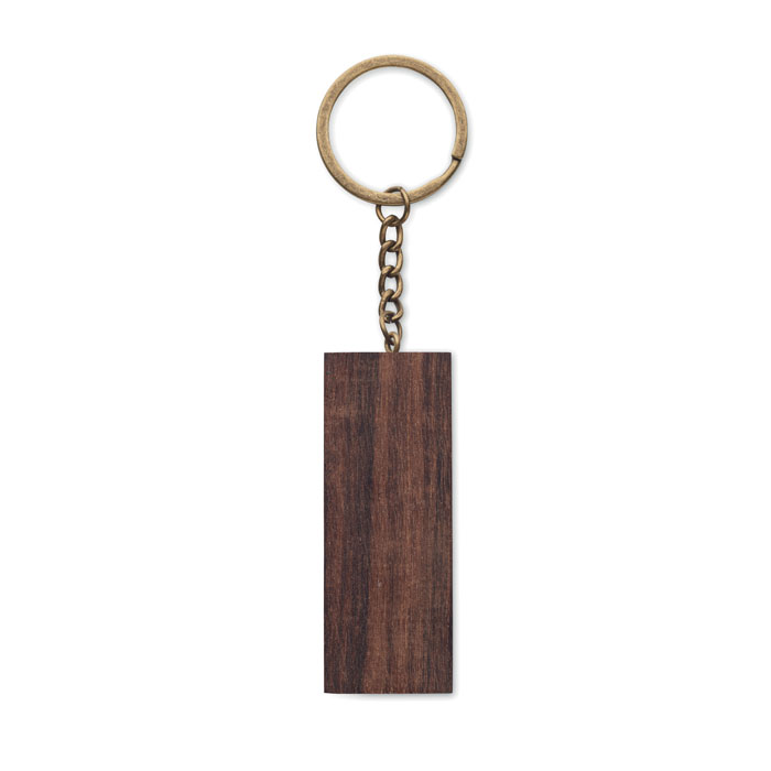 Nyckelring med telefonställ i valnötsträ.