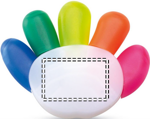 Highlighter med 5 färger i en ''High five'' form. Stor tryckyta.